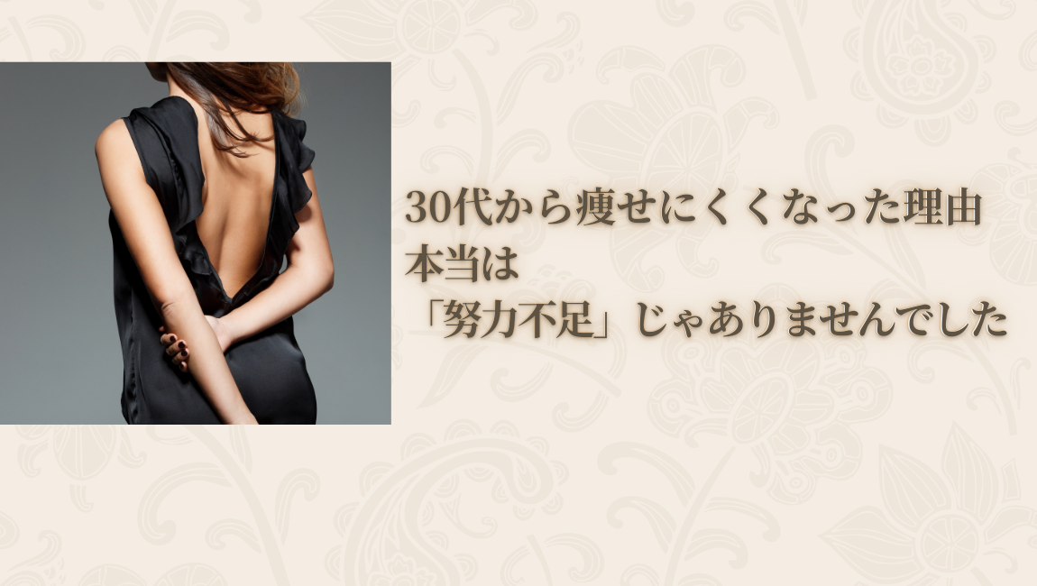 こんな風に感じたこと、ありませんか? ・昔より太りやすくなった ・食べる量は増えていないのに体型が変わる ・整体やエステに通っても、すぐ戻る ・「年齢のせいかな…」と諦めかけている